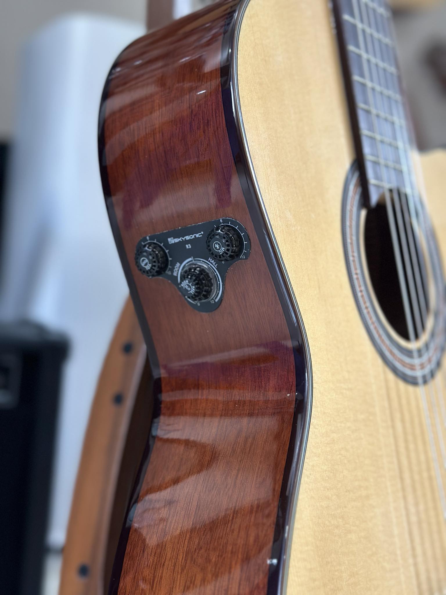 EQ Skysonic R3 “công nghệ” có sẵn loa trong thùng đàn, mang đến hiệu ứng vang vọng cho cây đàn ngay cả khi không sử dụng Amply.