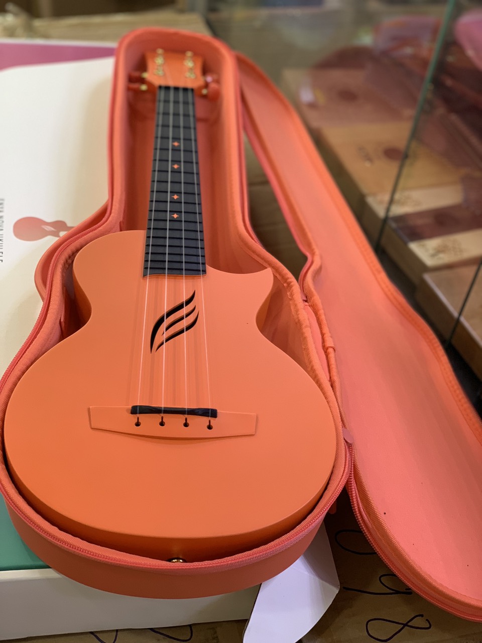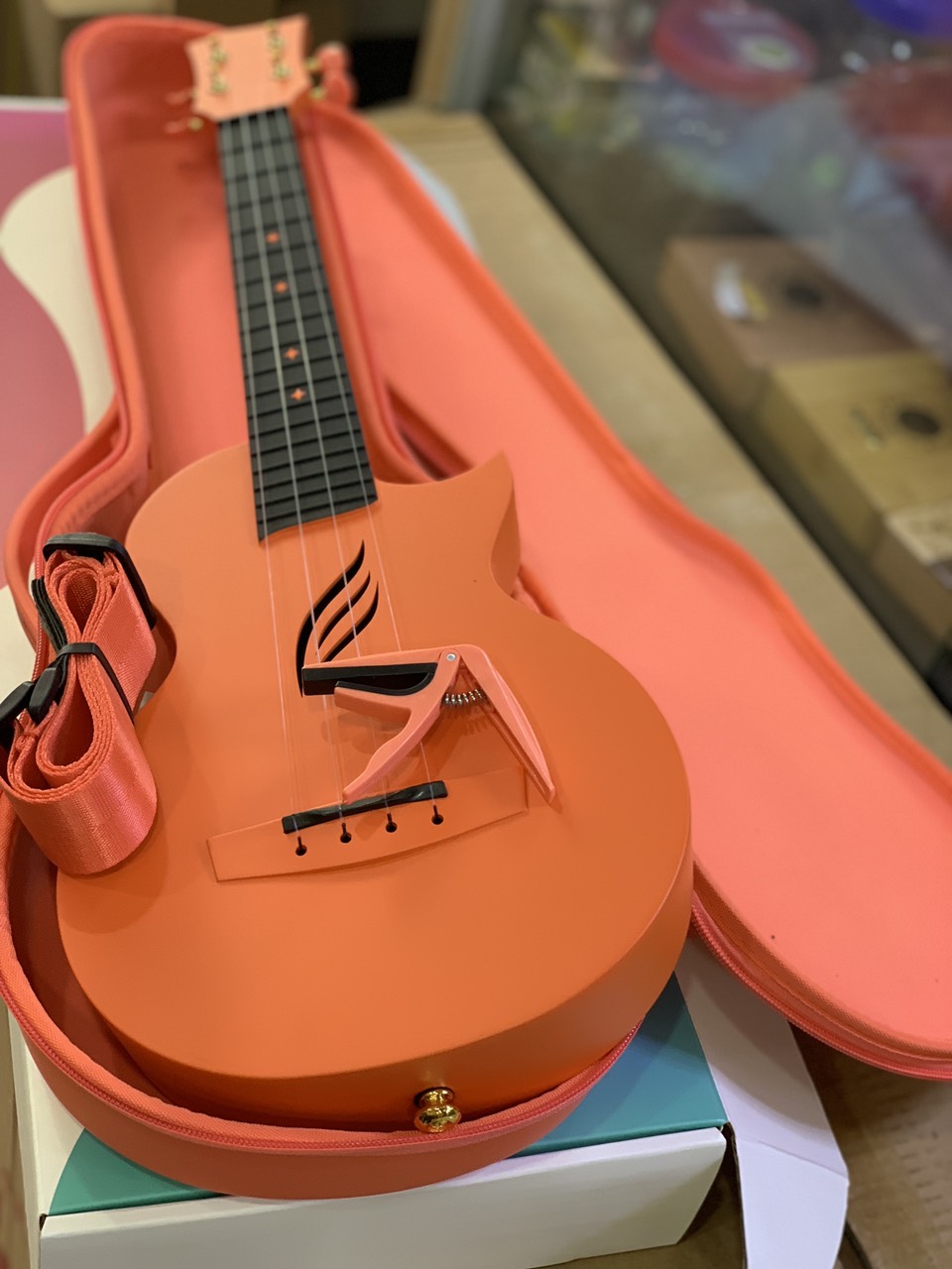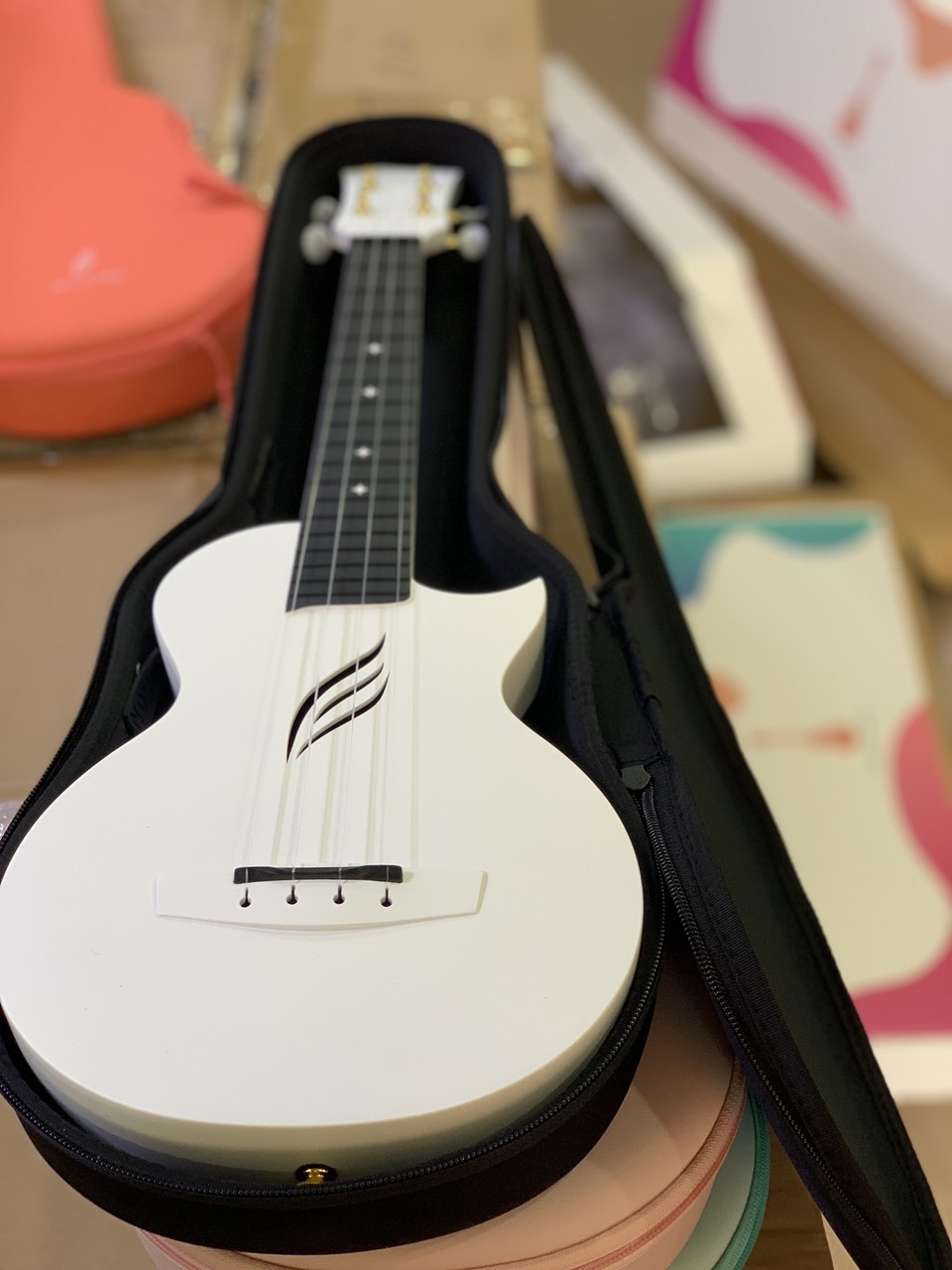 Cấu tạo bằng sợi carbon: Vì được cấu tạo bằng sợi carbon nên cây đàn sẽ chịu được những cú va đập ngẫu nhiên, siêu cứng, siêu bền và rất nhẹ, 100% chống nước. Đây cũng là vật liệu được sử dụng trên những dòng siêu xe đắt tiền. Ngoài ra cây đàn mang tới một vẻ đẹp tinh tế với hình dáng của lỗ thoát âm thanh độc đáo.